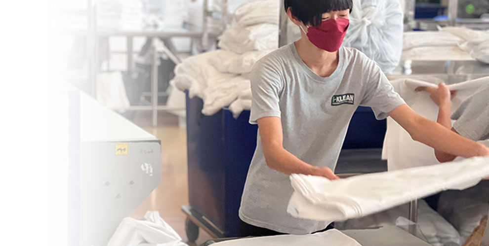 With i-Klean’s various types and sizes of industrial laundry equipment, along with the use of Eco-friendly hypoallergenic ECOLAB detergent, tailored washing processes with quality control for impeccable hygiene, allows us to achieve optimal hygiene and protection for your employees and customers thereby enriching their wellbeing in a sustainable way.